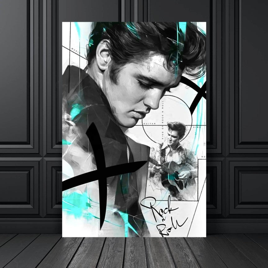 Auspacken und Aufhängen: Das Leinwandbild mit dem Motiv Abstraktes Portrait Elvis Hochformat in den Farben Schwarz-Weiß und Türkis setzt gekonnt ein Highlight an deiner Wand. Die Wörter Sänger, Rock Roll, Elvis, Presley, Abstrakt, Tänzer, Retro, Gitarre oder Musik lassen dein Herz höher schlagen? Dann bist du bei dieser Leinwand goldrichtig. Mit unseren handverlesenen Motiven mit den Themen Personen und Abstrakt kommt garantiert keine Langeweile an deiner Wand auf, eben ein echter Hingucker. Das Leinwandbild Abstraktes Portrait Elvis Hochformat ist in 4 Größen erhältlich.